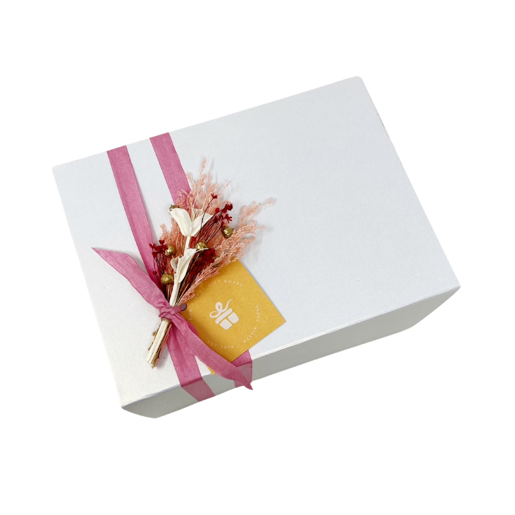 - Keepsake + reusable gift box tied up with festive ribbon