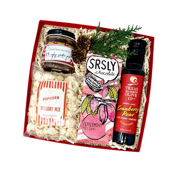 A little holiday taste of Texas gift that has something for everyone. Merry Texmas, Y'all! Includes: