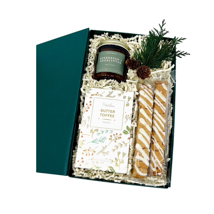 - Grand Provisions Butter Toffee Pretzels - crunchy, salty pretzels coated in buttery toffee for the perfect sweet and salty treat in holiday packaging